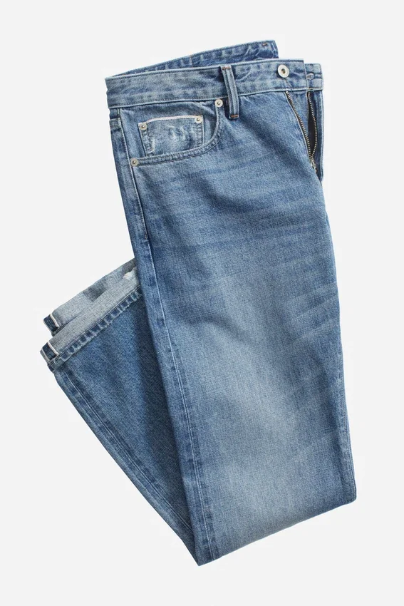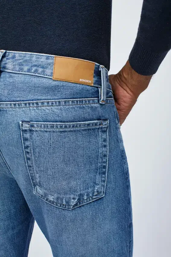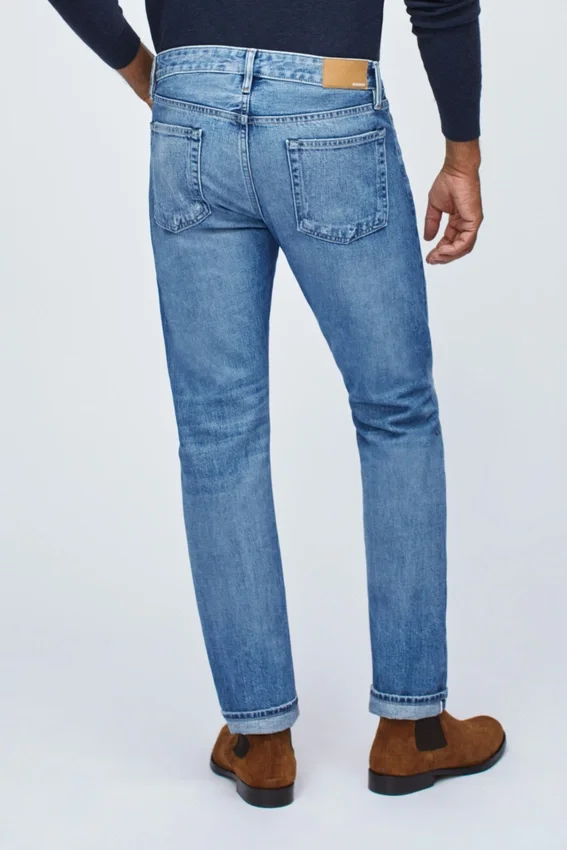 Estilo clásico con ribete de 100 % algodón orgánico | Fabricados en Estados Unidos con tejido importado | Curved Waistband característica con 5| Orillo en la costura exterior y en el bolsillo para monedas | Remaches en los bolsillos | Parche de cuero azul marino en la parte trasera de la cintura con el logotipo B
