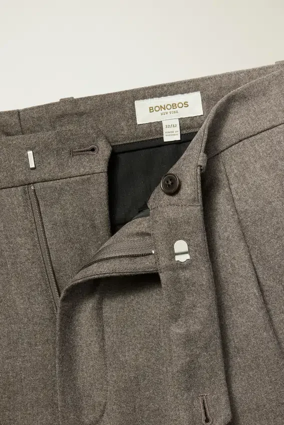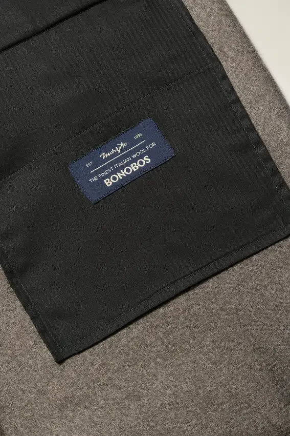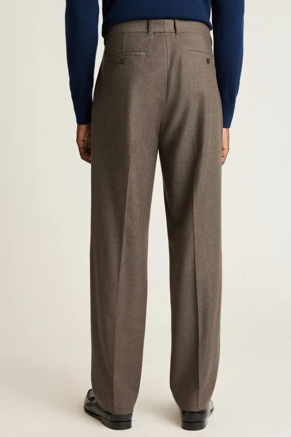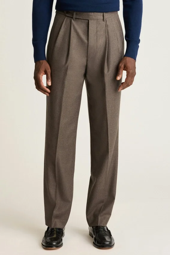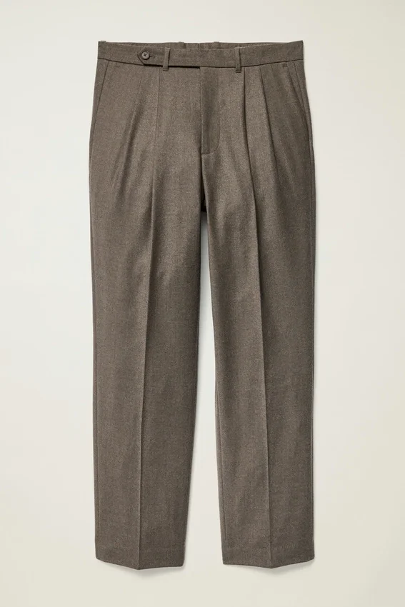Flanela de lana italiana de primera calidad con elegantes pliegues que aportan sofisticación de mediados de siglo.