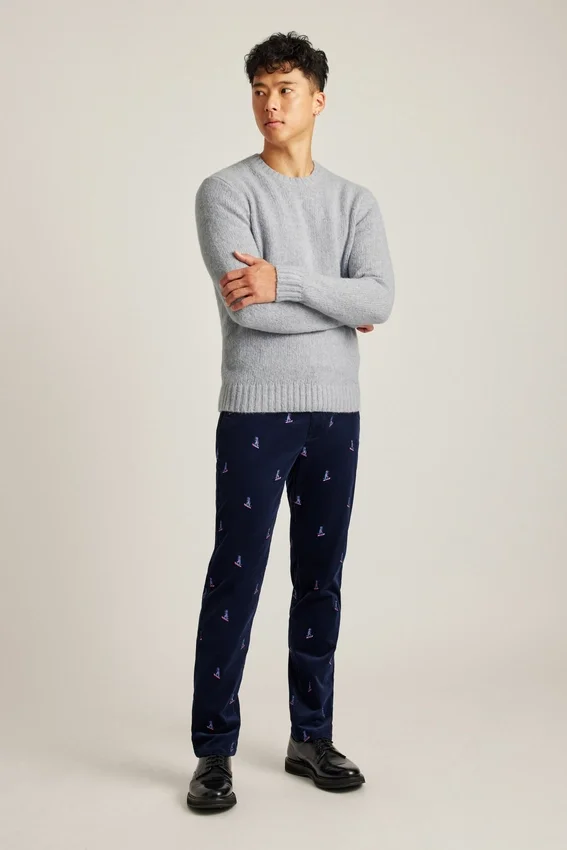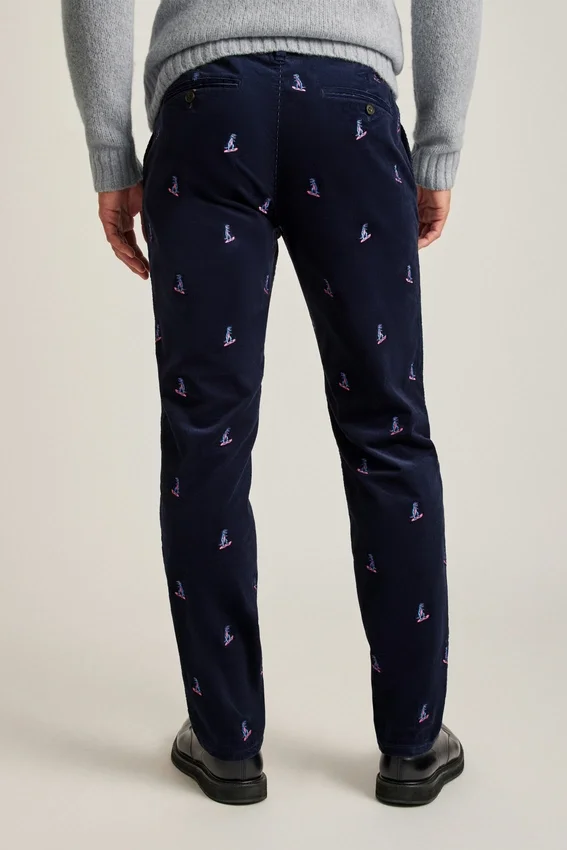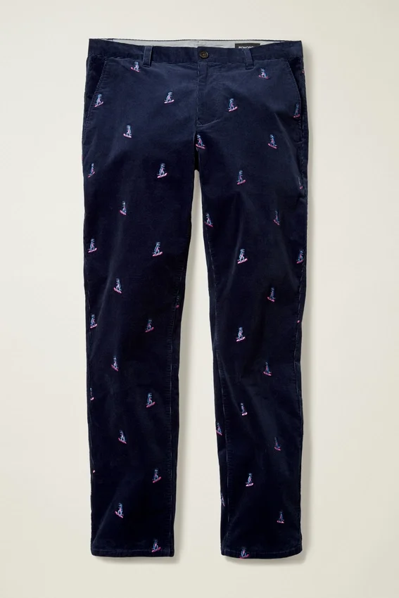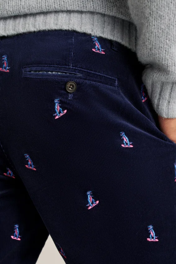 Pantalón de pana elástica bordada