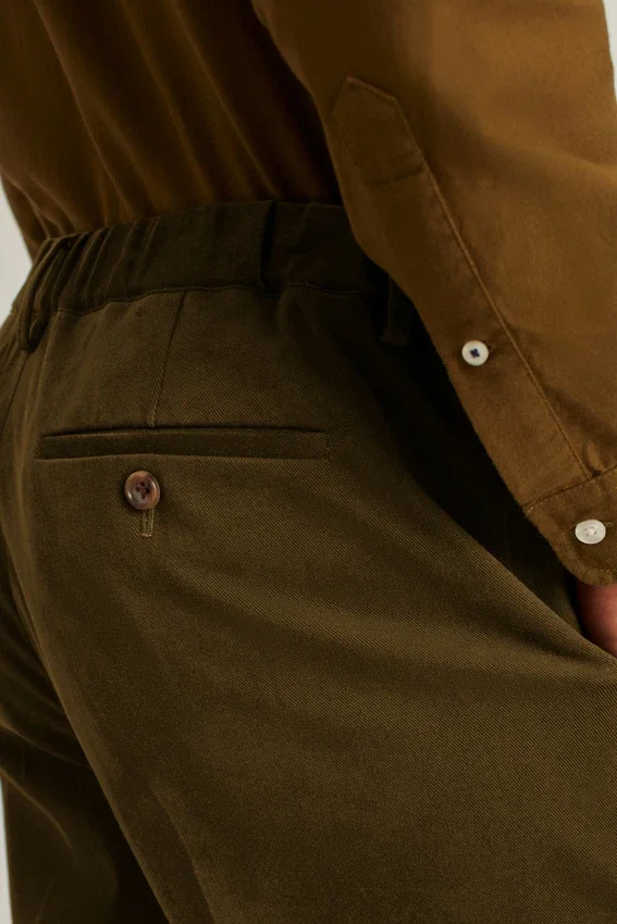 Pantalón de traje de algodón italiano con acabado de gamuza