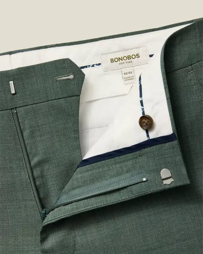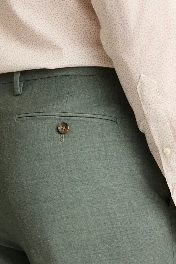 Tejido de Zignone | Cierre de gancho y barra | Bolsillos traseros con botones | Forro en la parte delantera de las piernas