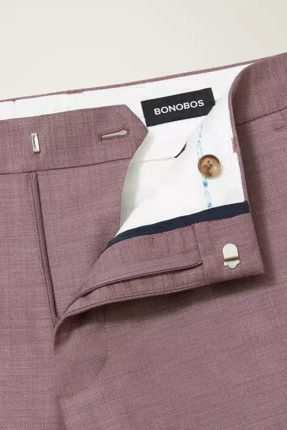 Los pantalones cuentan con un cierre clásico de gancho y barra y bolsillos traseros con botones.