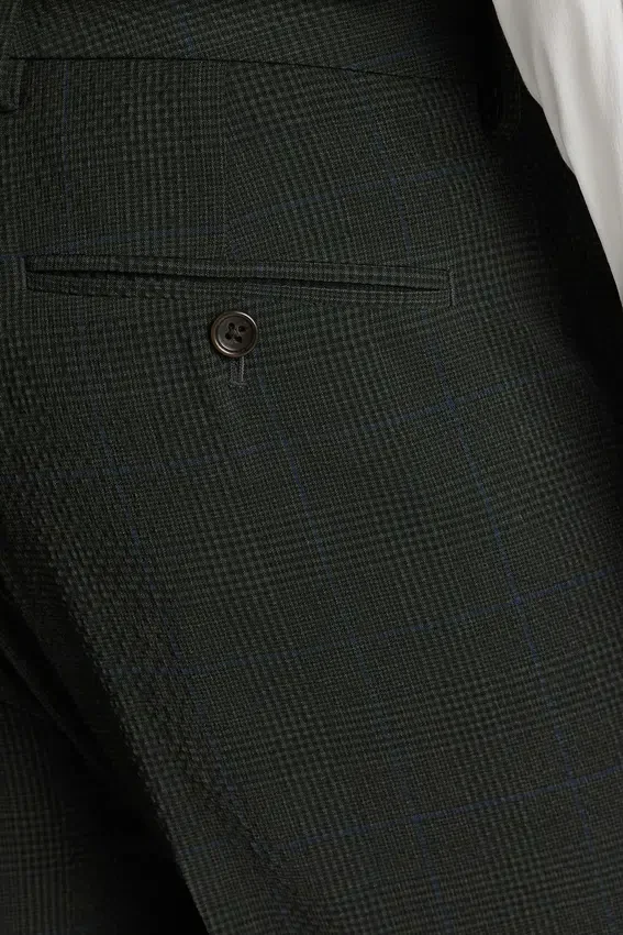 Este pantalón está confeccionado con un tejido elástico de lana para todas las estaciones y es perfecto para cualquier ocasión. | Cierre de gancho y barra | Bolsillos traseros con botones | Forro en la parte delantera de las piernas