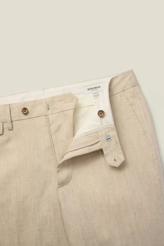 Con una confección clásica y hermosos detalles, estos pantalones de vestir de lino italiano de primera calidad son perfectos para cualquier evento.