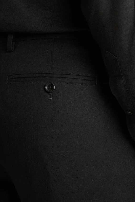 Con una confección clásica y hermosos detalles, estos pantalones de vestir de lino italiano de primera calidad son perfectos para cualquier evento.