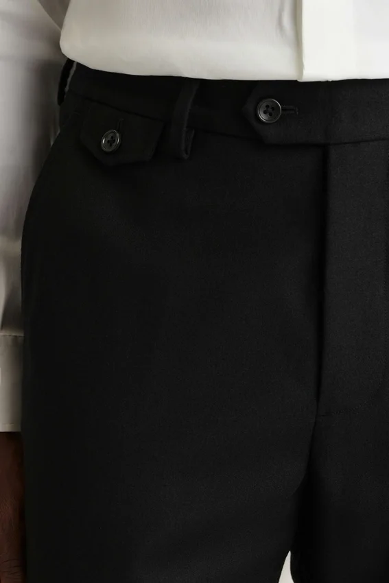 Tejido de Marzotto | Cierre con lengüeta en la parte delantera | Bragueta con cremallera | Bolsillo para billetes | Bolsillos diagonales con costuras decorativas | Forro en la parte delantera de las piernas