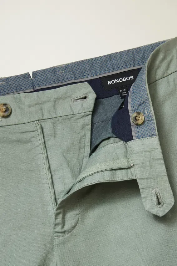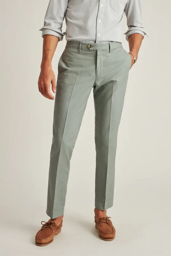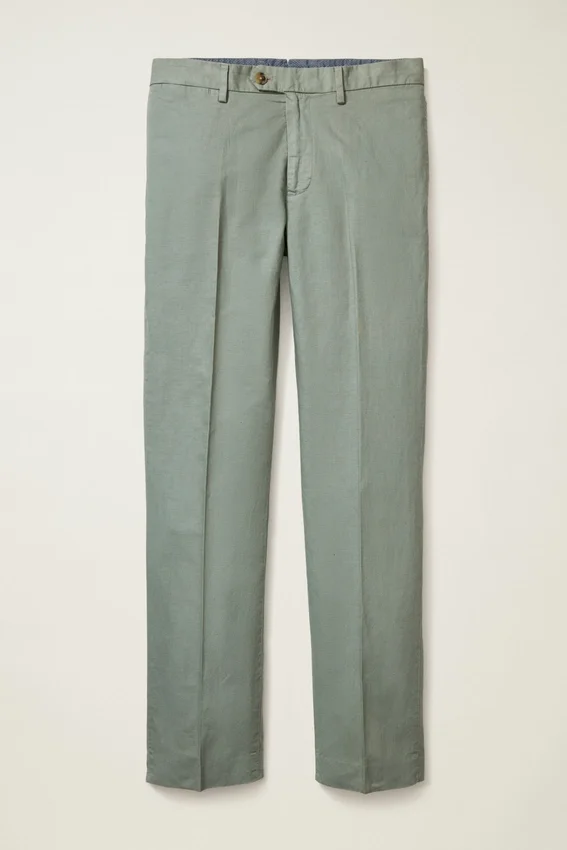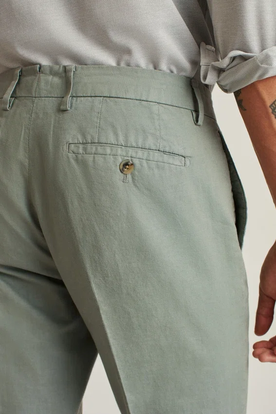 Pantalón chino de primera calidad en mezcla de algodón y lino | Lengüeta y botones alargados en los bolsillos traseros | Forro interior sutil | Bolsillo para monedas