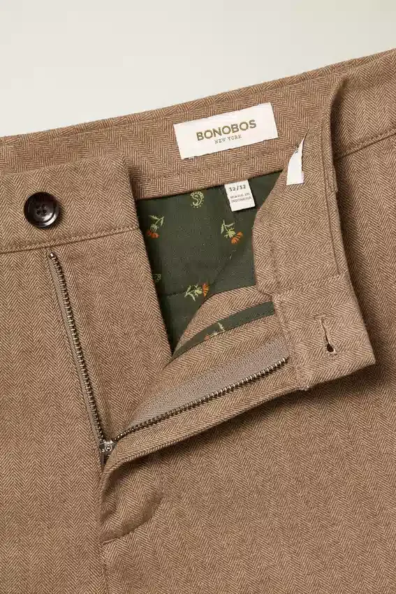 Los pantalones chinos de espiga cepillados de Bonobos ofrecen la suavidad de la franela sin el peso. Cómodos pantalones chinos de espiga para hombre, diseñados para un uso diario refinado.