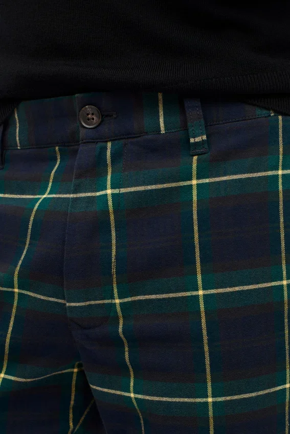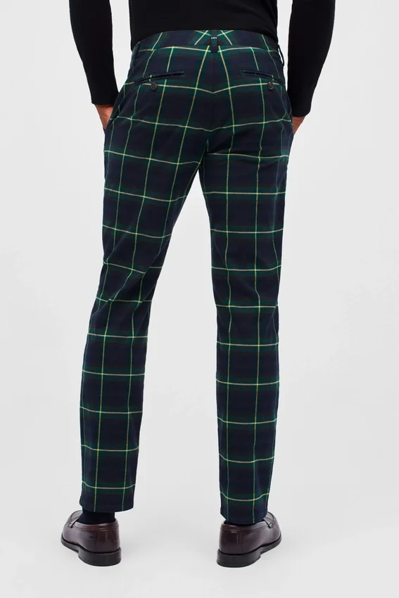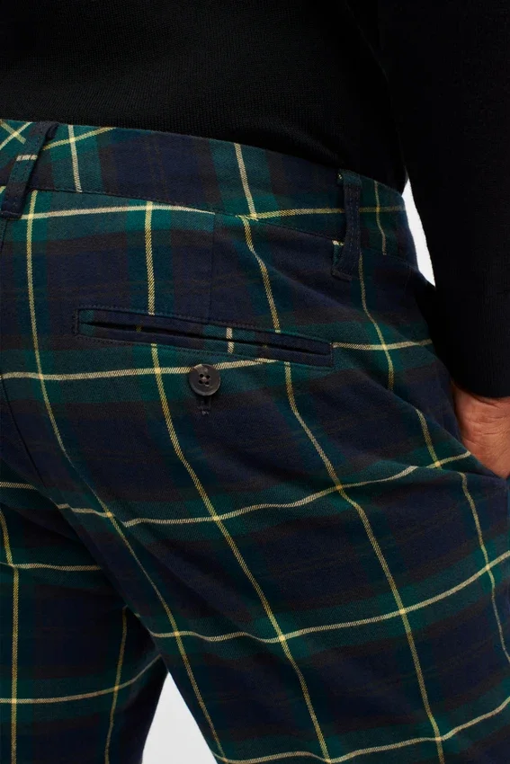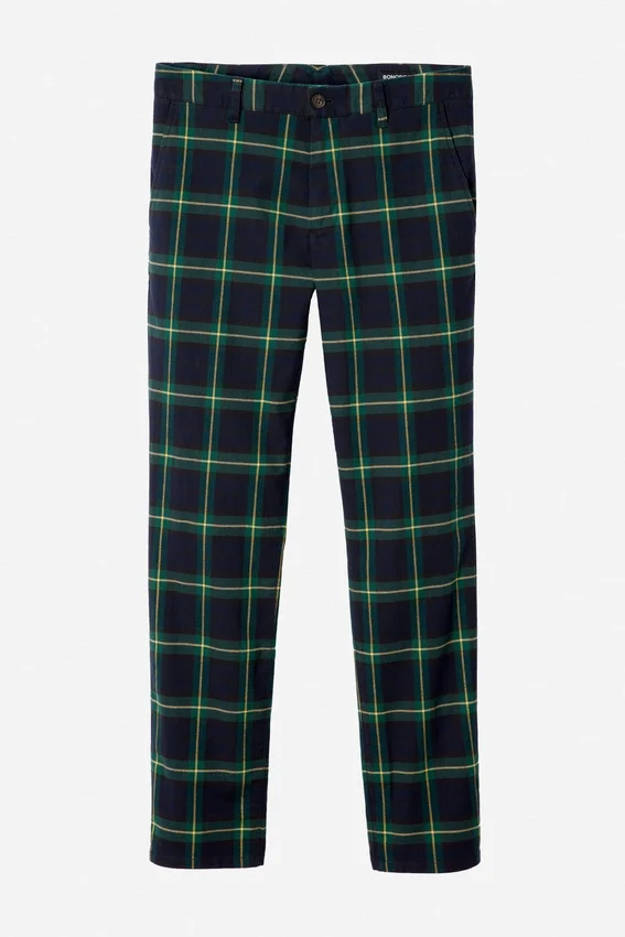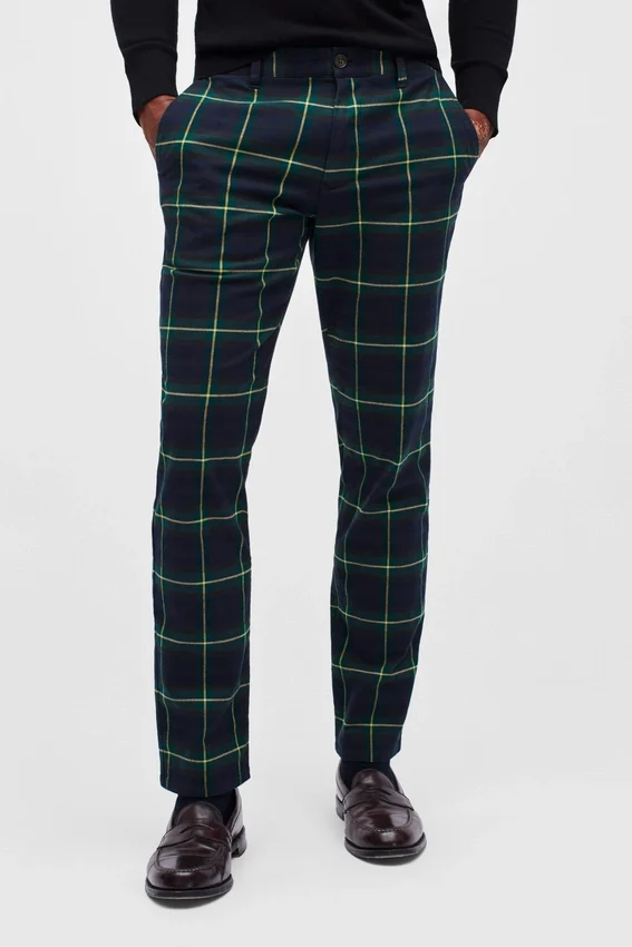 Pantalones chinos elásticos de tartán navideño