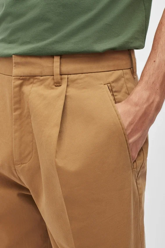 Pantalones cortos chinos elásticos con pliegues