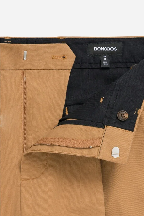 El mismo tejido de algodón elástico que nuestros Stretch Washed Chinos | Cintura contorneada característica con cierre de gancho y barra | Bolsillos traseros ribeteados con botones y solapas