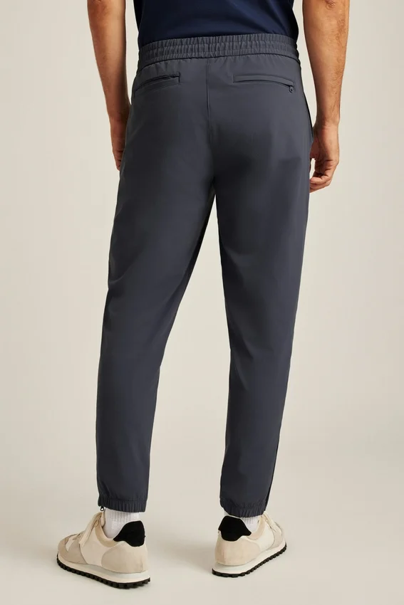 Cintura elástica | Cierrecon cordón ajustable | Contraste tonal | Cremallera en el tobillo | Bolsillo trasero con cremallera | Extremos del cordón y ojales | Bolsillo interior oculto para dispositivos multimedia | Tobillo elástico