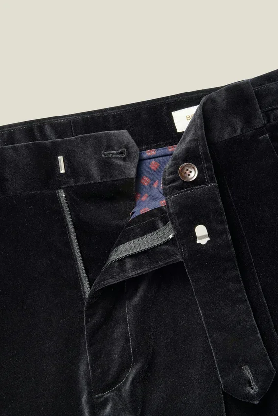 Terciopelo elástico de algodón italiano | Sofisticado pliegue doble | Cierre con lengüeta lateral | Lengüeta frontal extendida