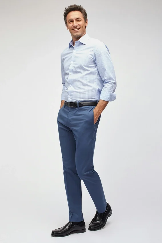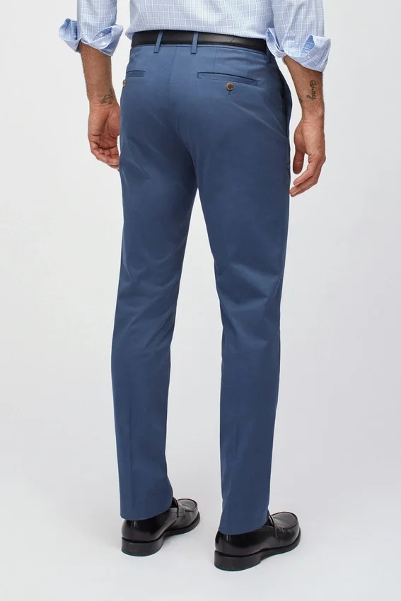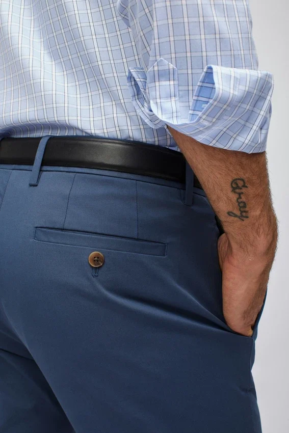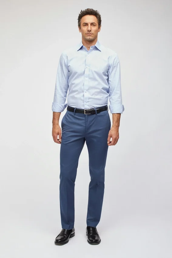 Sarga de algodón de primera calidad fabricada en Italia por Manteco Mill | Construcción exclusiva de la cintura contorneada | Cierre frontal con gancho y barra | Bolsillos delanteros con costura limpia y construcción especial de la bolsa del bolsillo para minimizar el abismo | Bolsillos traseros ribeteados con botones | Compartimento para monedas en la cintura delantera | Muesca trasera | Acabado de dobladillo invisible | Cinta interior de la cintura de primera calidad fabricada en Italia