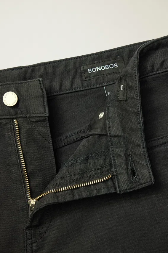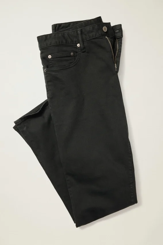 Algodón extra elástico | Teñido en prenda | Diseño de 5 bolsillos | Curved Waistband característica | Herrajes metálicos cuidadosamente seleccionados | Parche de papel con la marca certificado por Oeko-Tex y FSC