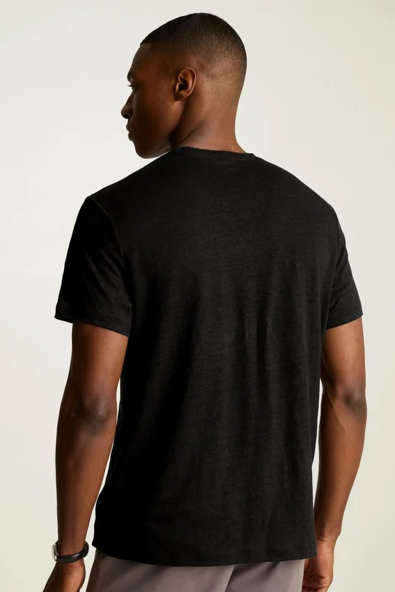 Descubre lo último en lujo informal con nuestra camiseta de cuello redondo de lino italiano transpirable. Aporta un toque de clase a una prenda esencial para el día a día.