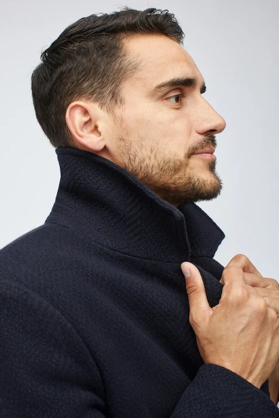 El modelo mide 1,88 m, tiene un contorno de pecho de 102 cm y lleva una talla 40R. Ajuste previsto: este abrigo está diseñado para un ajuste holgado. Elige una talla menos si prefieres un abrigo más entallado.