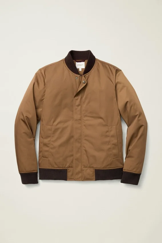 La chaqueta Filled Boulevard Bomber de Bonobos es una prenda resistente a la lluvia con ligero aislamiento. Una chaqueta bomber aislante para hombre diseñada para ofrecer comodidad, calidez y uso en múltiples estaciones.