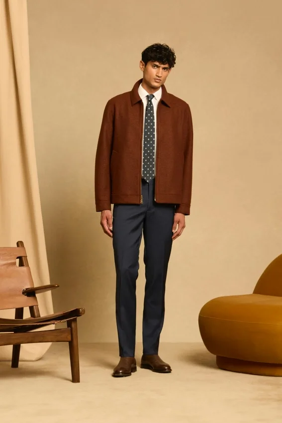 Chaqueta de lana cepillada italiana
