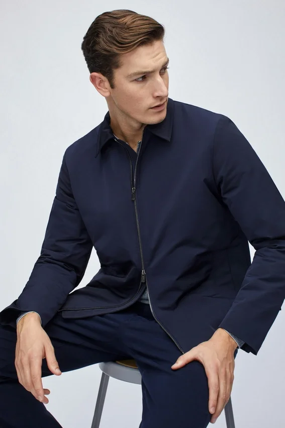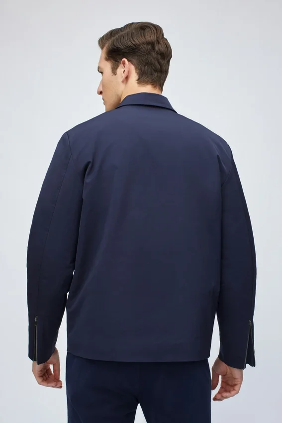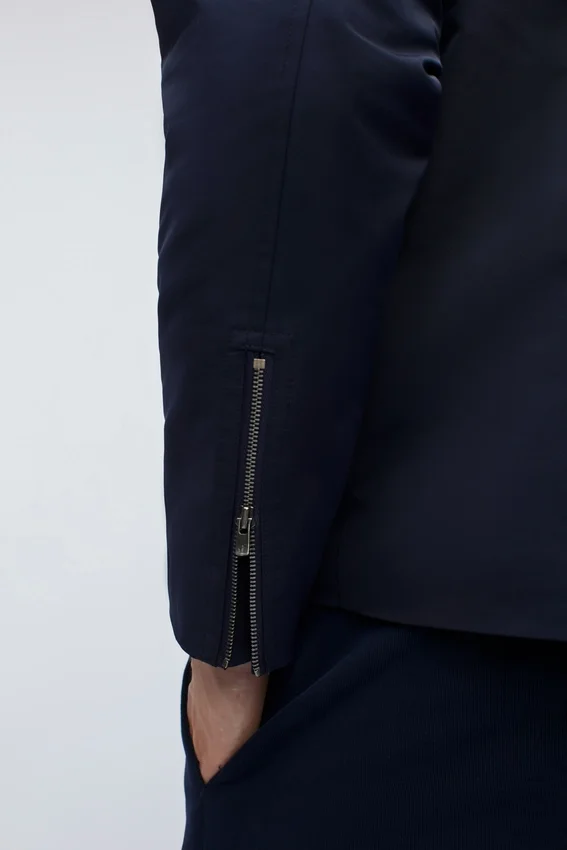 Cremallera metálica bidireccional en el centro delantero | Bolsillos exteriores de ojal simple | Cremalleras metálicas en las mangas | Interior acolchado | Bolsillos interiores de ojal