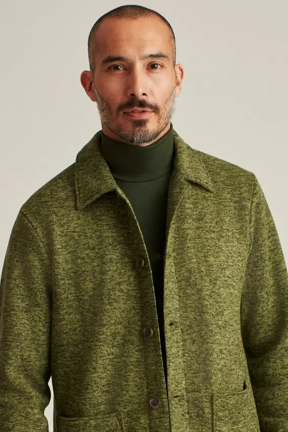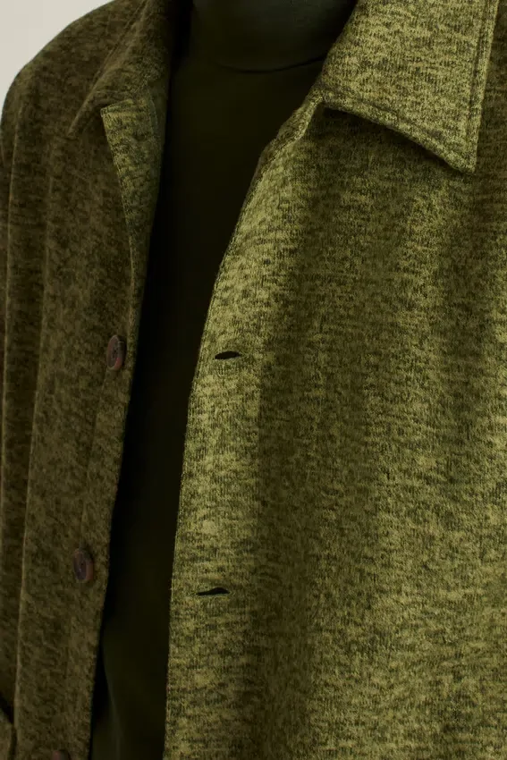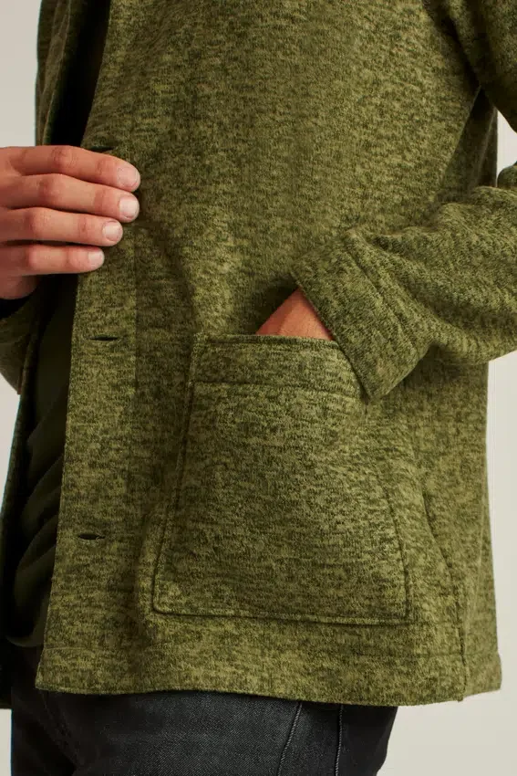 Estilo chaqueta de trabajo en forro polar supersuave y cómodo | Color jaspeado | Bolsillos, cuello y cierre con botones