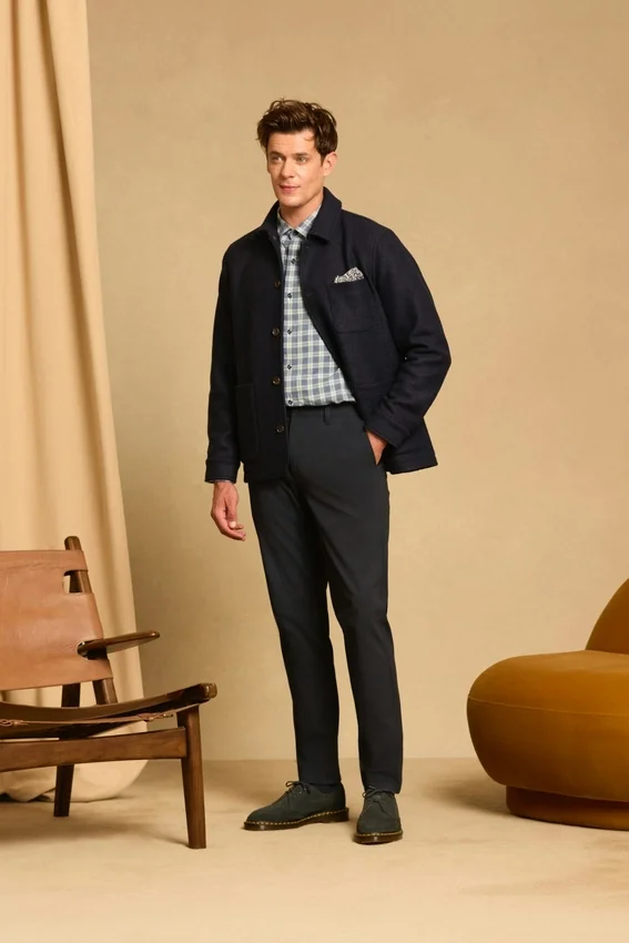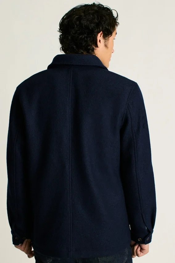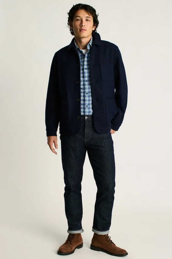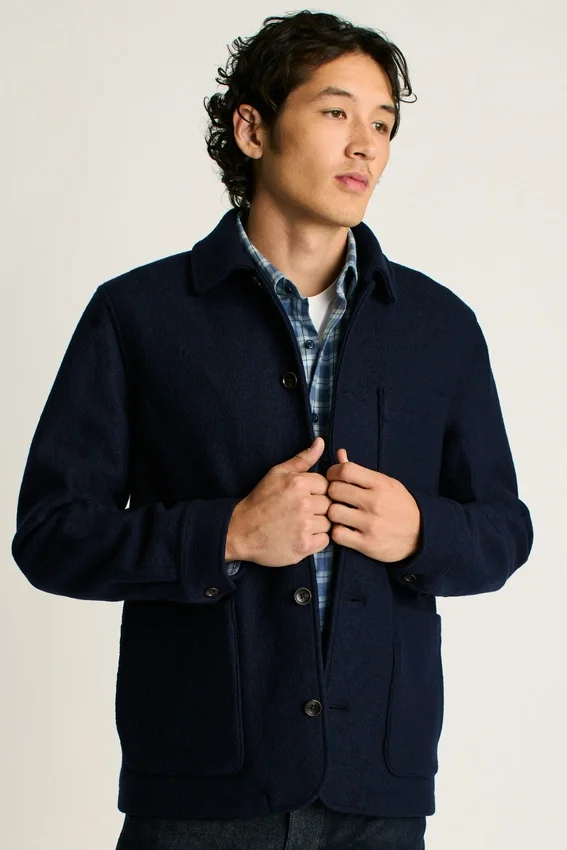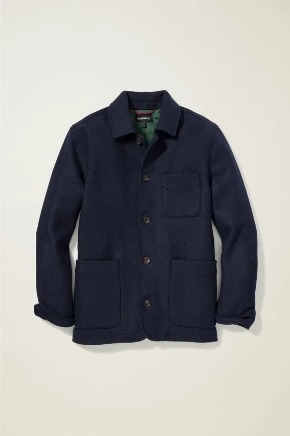 ¡Mantén un estilo robusto y elegante con la chaqueta de trabajo de Bonobos! Fabricada en Italia, resistente al agua y con lana hervida para usarla todo el año.