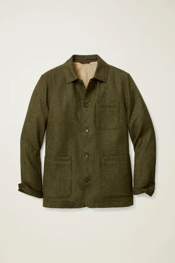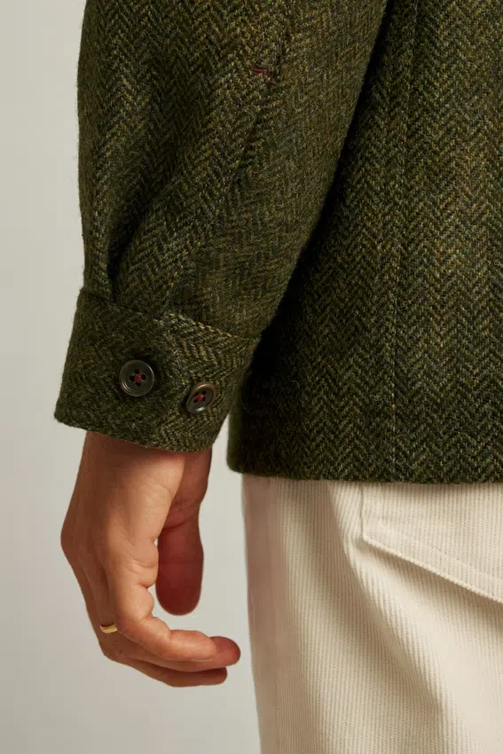 Confeccionada en tweed inglés de lana | Cierre con botones en la parte delantera y en las mangas | Bolsillos de parche | Bolsillo interior | Presilla para colgar | Interior totalmente forrado