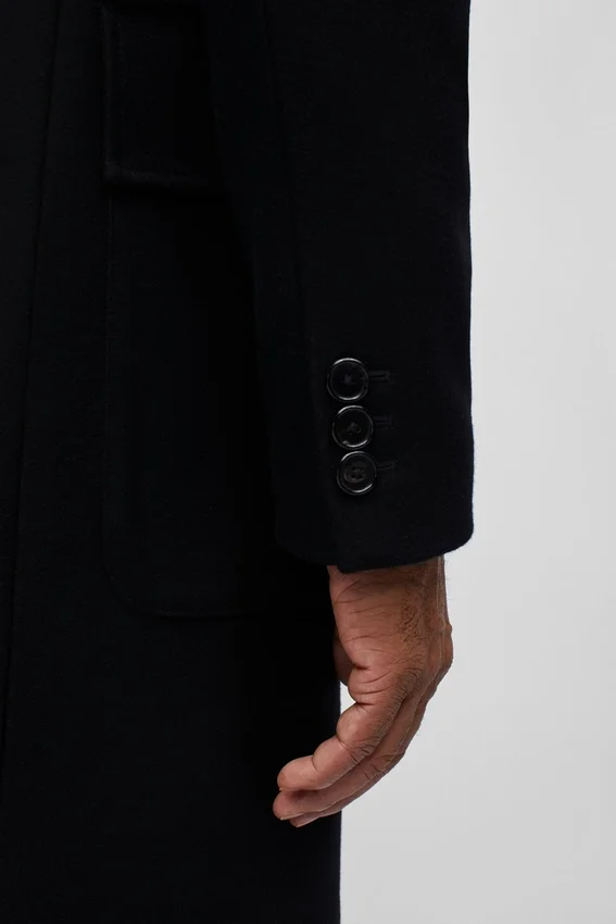 Lana repelente al agua | Doble botonadura de seis botones | Solapas en pico | Cuerpo y mangas totalmente forrados | Bolsillos de parche con solapa en la parte delantera | Abertura trasera simple | Bolsillos interiores de ojal | Botones de cuerno auténtico | Botones funcionales en los puños de las mangas | Lazo para colgar en el interior