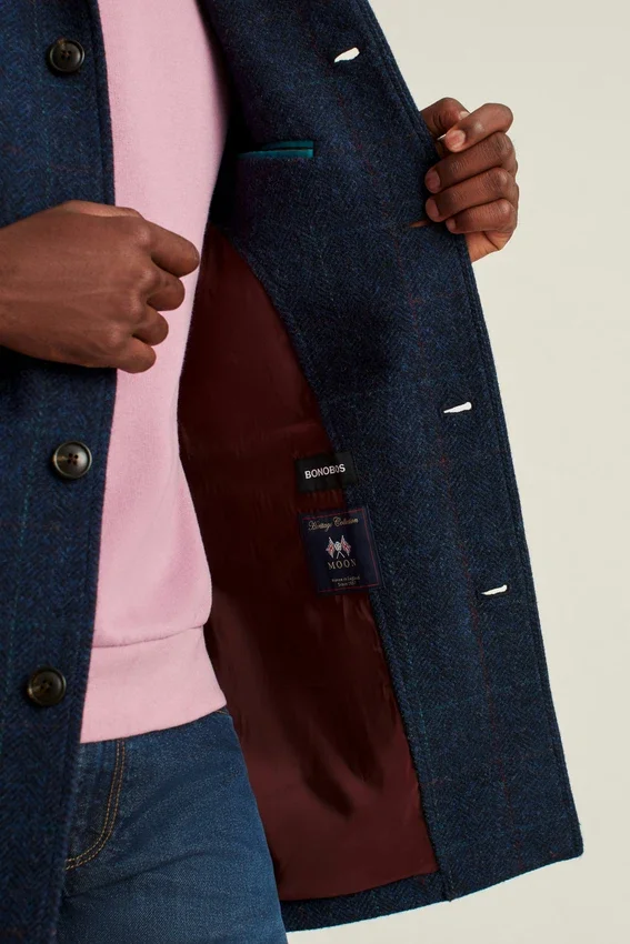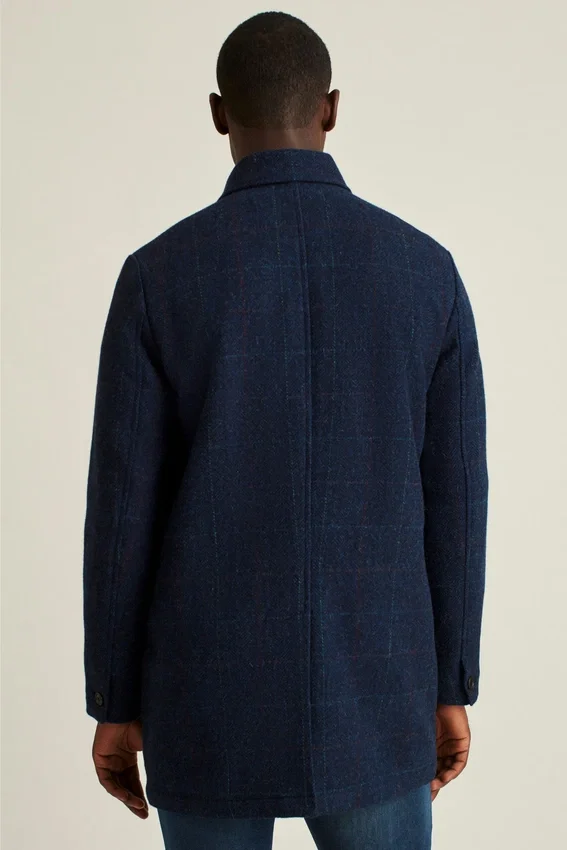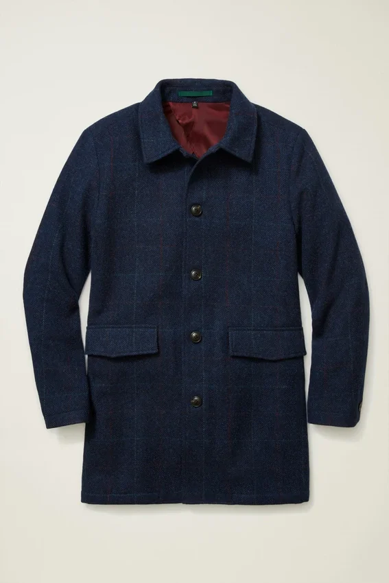 Tweed cálido y lujoso de una legendaria fábrica inglesa, confeccionado en un elegante abrigo tipo car coat.