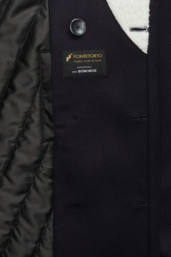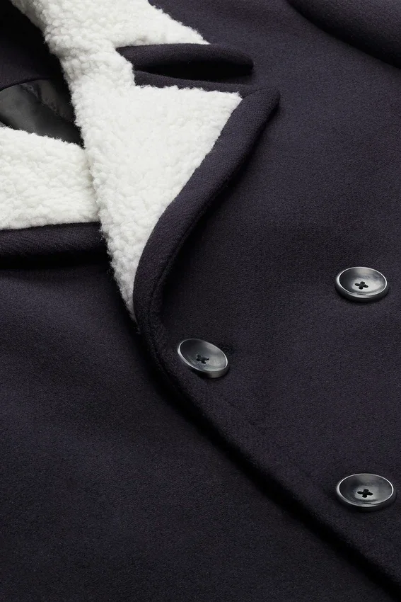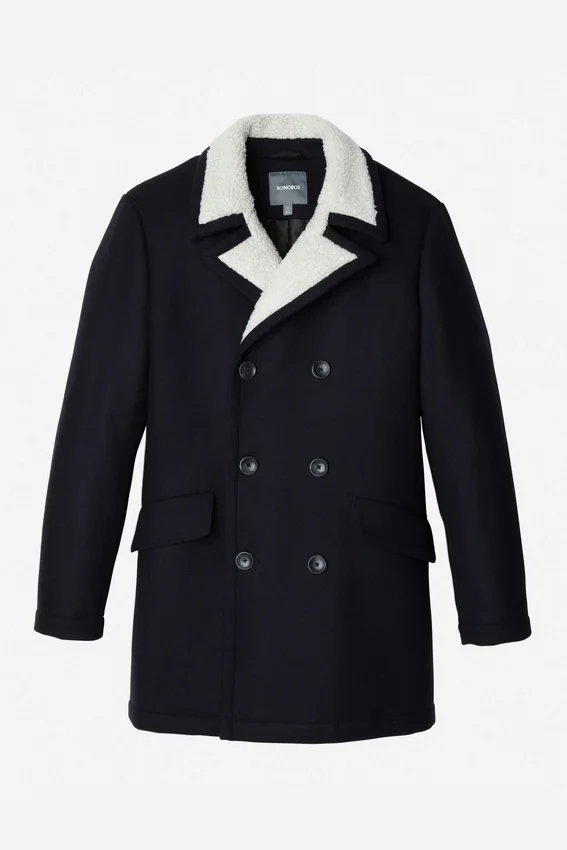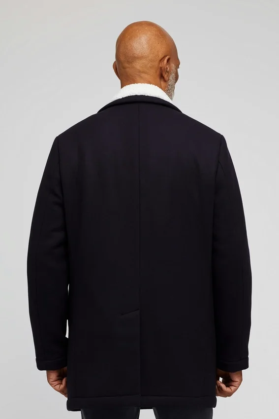 Doble botonadura | Interior totalmente forrado y acolchado | Sherpa solo en el cuello | Abertura trasera simple | Bolsillos interiores de ojal