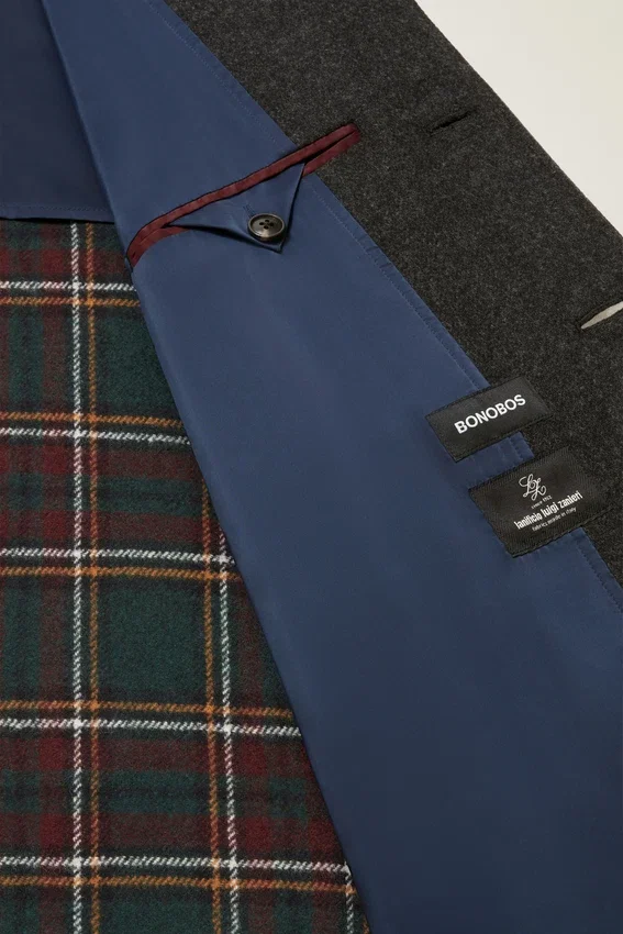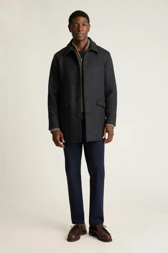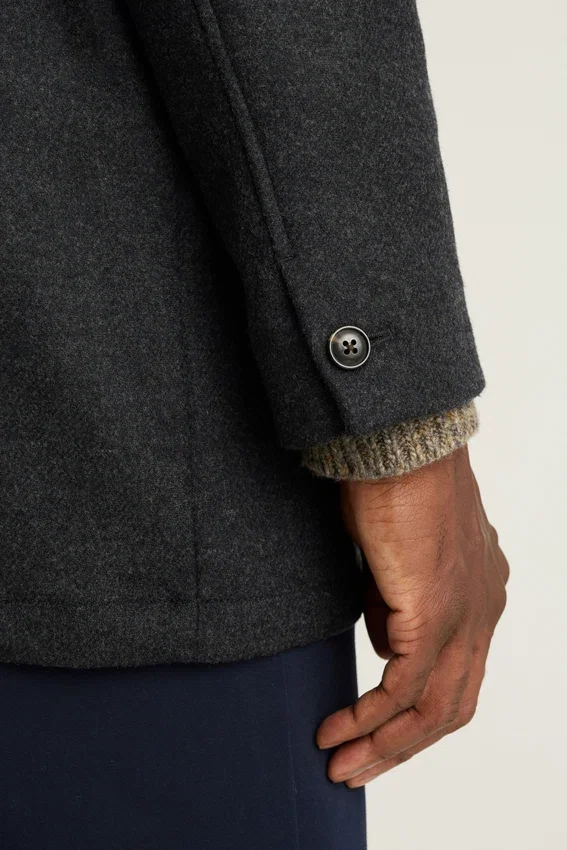 Confeccionado en lana italiana de doble cara | Repelente al agua | Medio forrado | Bolsillos con solapa | Cierres con botones | Puños con botones funcionales | Abertura trasera | Bolsillos interiores | Lazo para colgar
