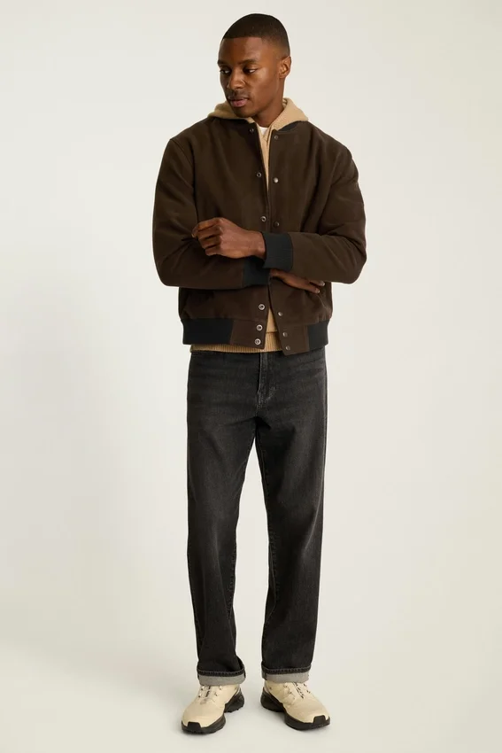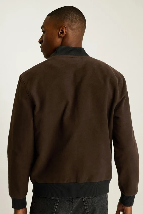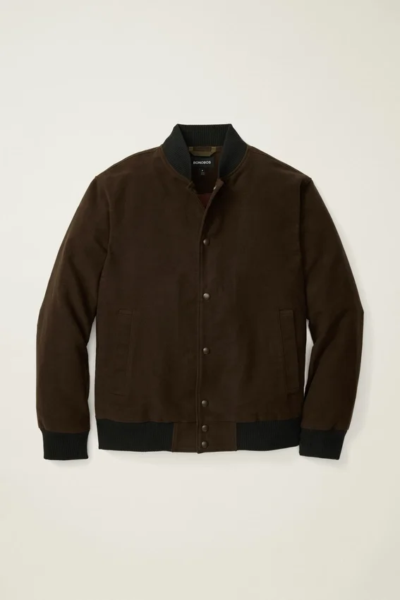 La versatilidad y transpirabilidad del algodón. La suavidad y el lujo de la molesquín. Todo en una elegante bomber.