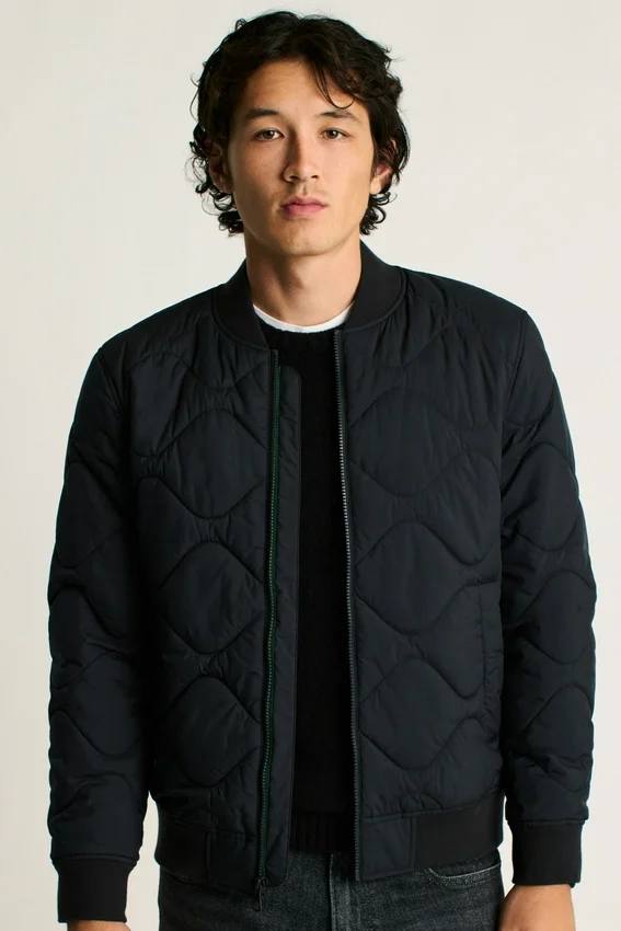 ¡Encuentra tu nueva chaqueta bomber acolchada favorita en Bonobos! Una chaqueta bomber de nailon con relleno Primaloft® para mayor calidez y acabado con una capa exterior de nailon resistente a la lluvia.