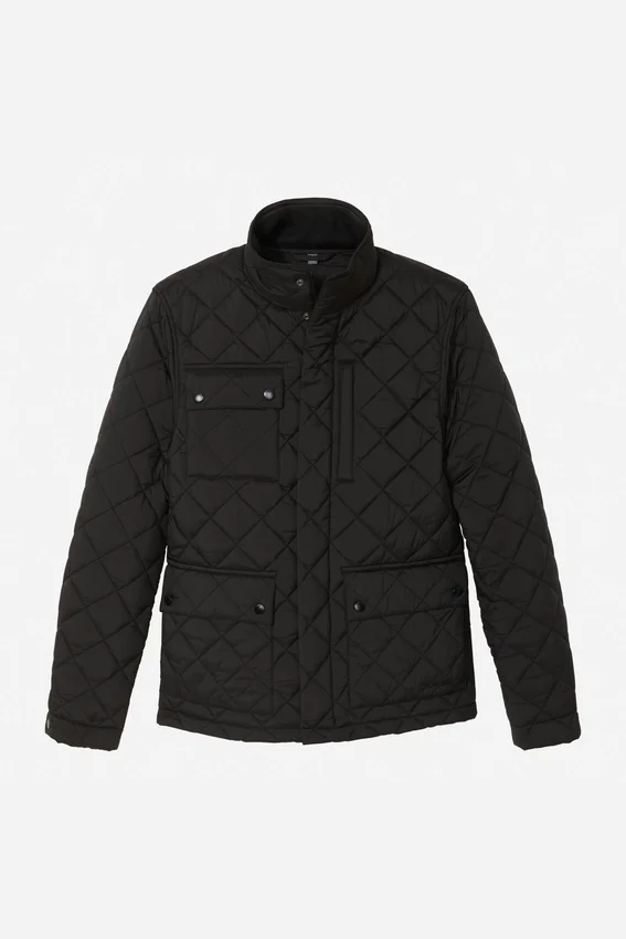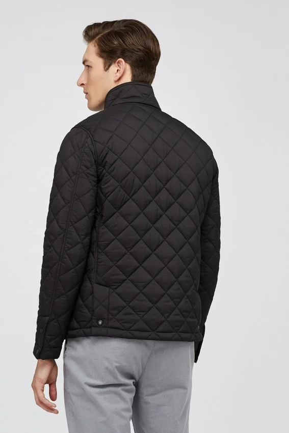 Acolchado en rombos | Bolsillos de parche con entrada lateral | Bolsillo de parche en el pecho y bolsillo con cremallera en el pecho | Cuello acanalado interior | Frente con cremallera y botones a presión | Puños con botones a presión y aberturas traseras