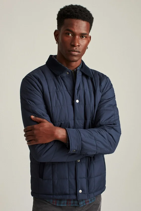 La chaqueta acolchada Barn está diseñada para ofrecer mayor calidez con un material resistente al agua y cuenta con detalles de pana para un estilo adicional.