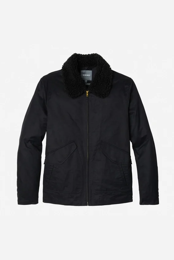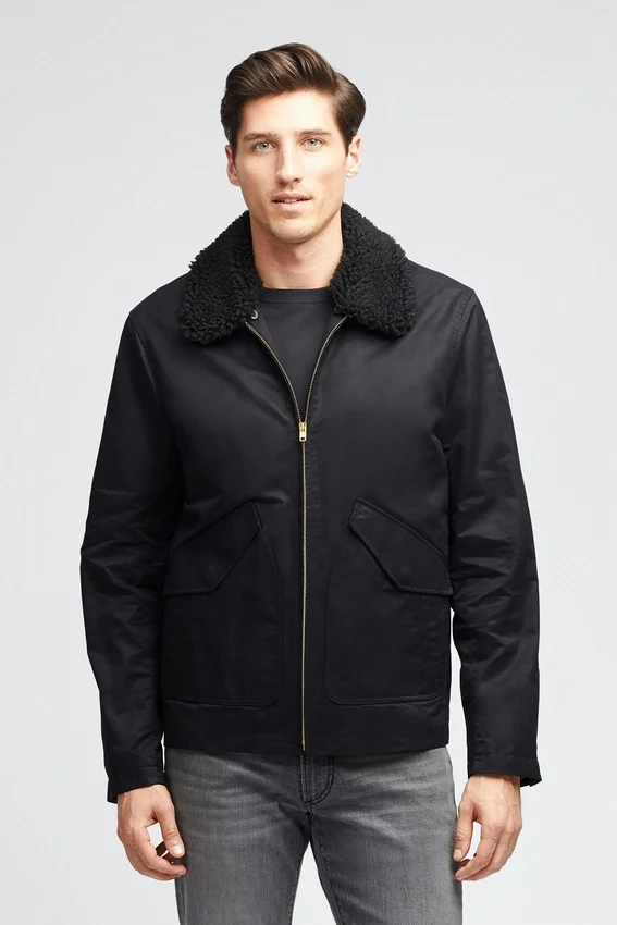 Totalmente forrada con franela | Mangas forradas de poliéster | Bolsillos de parche en ángulo con entrada lateral de ribete simple | Manga articulada | Broche oculto en el puño | Cuello de sherpa desmontable | Bolsillos interiores de ribete simple