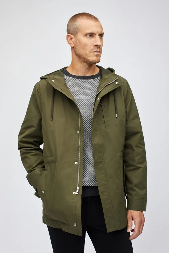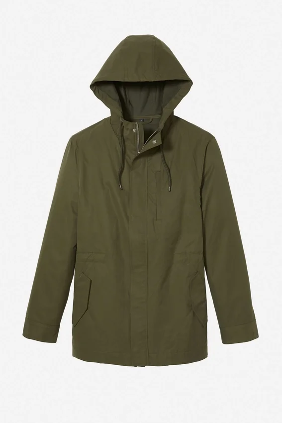 La chaqueta Field es una prenda larga, con múltiples detalles, resistente al agua y con capucha, diseñada para la lluvia ligera y el clima frío. Disponible en verde oliva y azul oscuro. ¡Envío gratis!