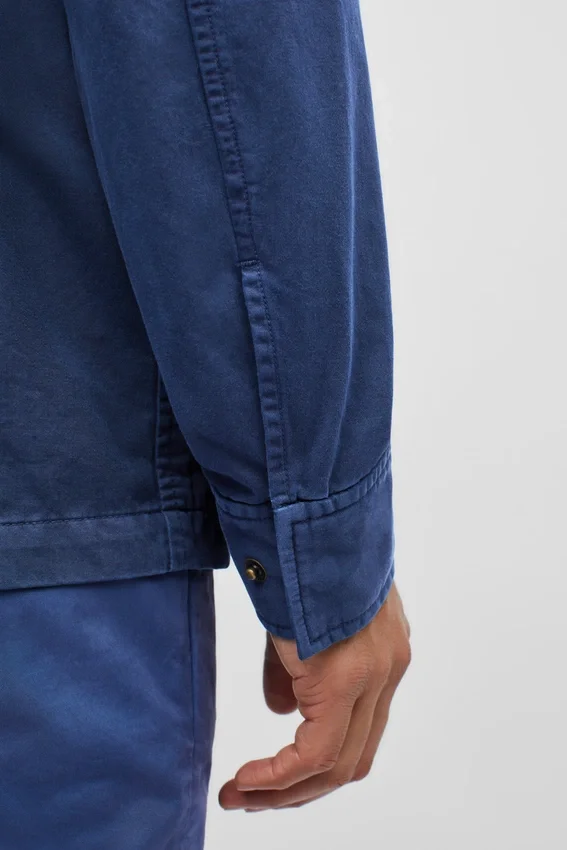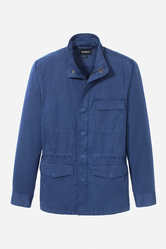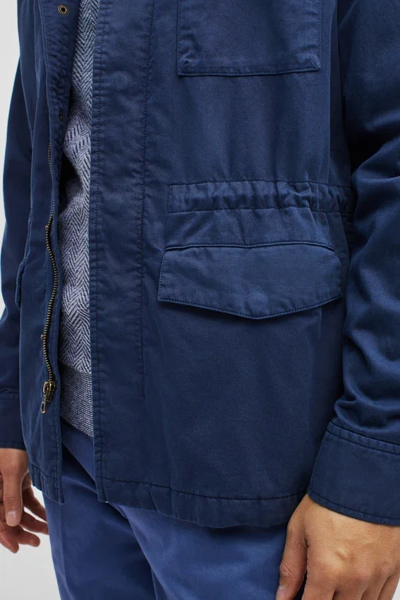 Diseño moderno de chaqueta de campo | Teñida en prenda para un look vintage | Bolsillos exteriores con cierres a presión | Bolsillo de parche interior | Cordón interior en la cintura | Botones a presión en los puños | Lazo para colgar | Cierre de cremallera en la parte delantera con botones a presión ocultos