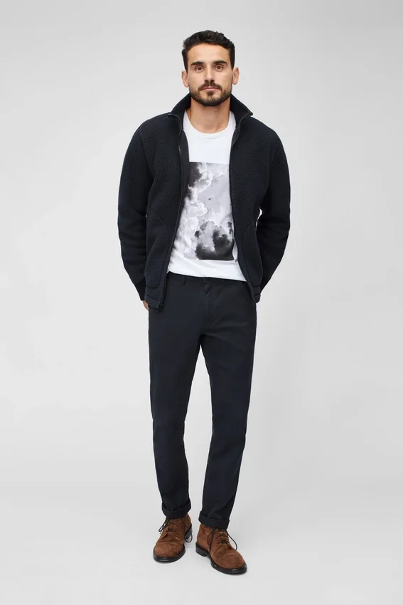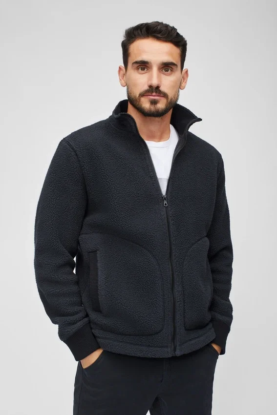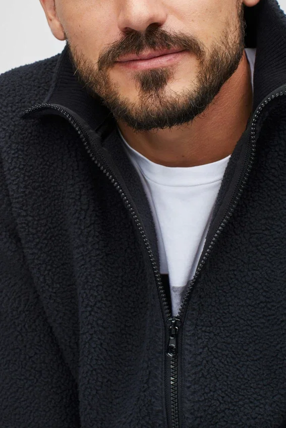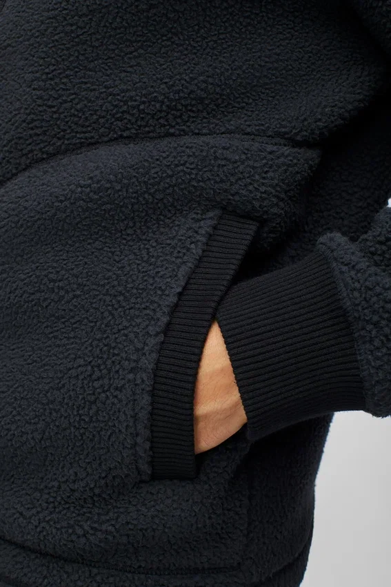 Interior acanalado en el cuello y los puños | Dobladillo abierto | Costuras planas en todo el cuerpo para mayor comodidad | Cremallera en el centro delantero | Bolsillos de ojal simples con ribete acanalado | Bolsillos suaves para mantener las manos calientes | Sin forro