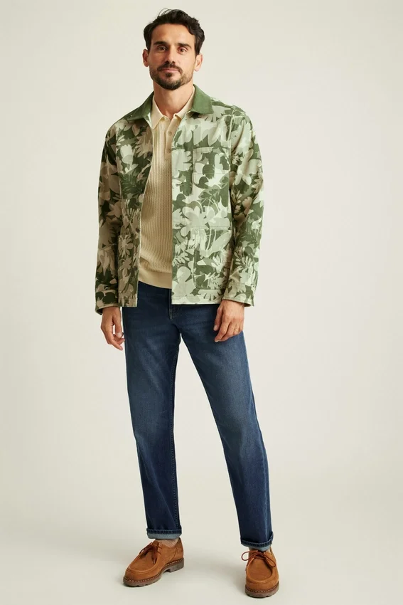El clásico pantalón francés de trabajo se renueva con un toque artístico: estampado original, un poco de elasticidad y muchos bolsillos.