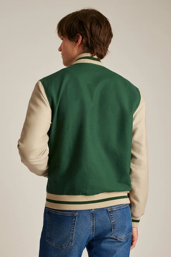 Tu clásica chaqueta bomber para hombre se ha actualizado al estilo universitario. ¿Quién dice que no puedes volver a los buenos viejos tiempos? ¡Consíguela hoy mismo en línea, solo en Bonobos!