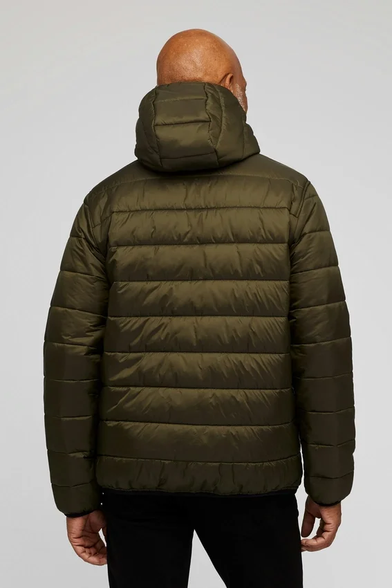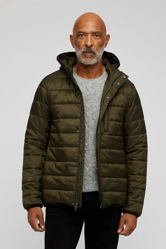 Relleno sintético | Dobladillos y abertura de la capucha con acabado elástico en V | Cremallera frontal con botones a presión ocultos en la tapeta delantera | Bolsillos para las manos en las costuras | Bolsillo de ojal en el pecho con cremallera | Un bolsillo interior con cremallera