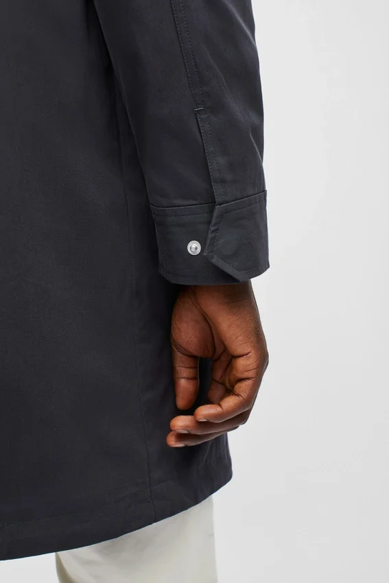 Tejido de fabricación italiana, resistente al agua | Bolsillos con solapa y cierre de broches | Dos bolsillos de parche interiores | Interior semiforrado | Cordón interior en la cintura | Broches en los puños | Lazo para colgar | Cierre de cremallera en la parte delantera con broches ocultos