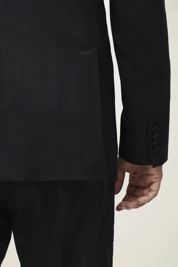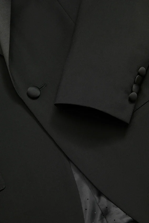 La chaqueta de esmoquin definitiva para cualquier ocasión. Resistente a las arrugas y a las manchas, solapas en punta de satén y 3 opciones de ajuste. Disponible en negro clásico. ¡Envío gratis!