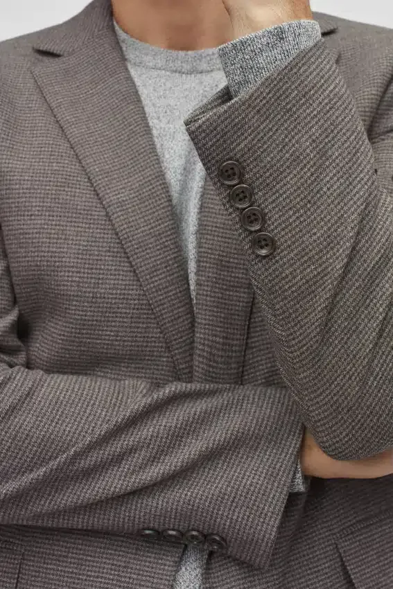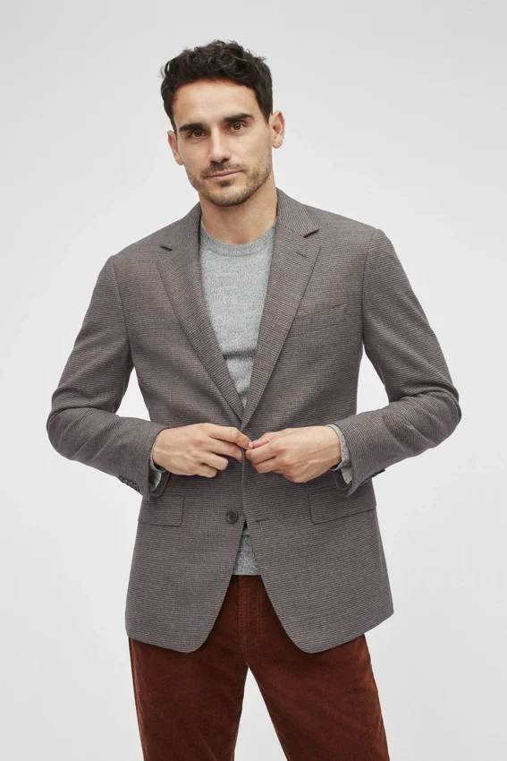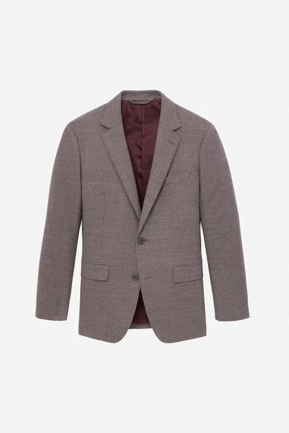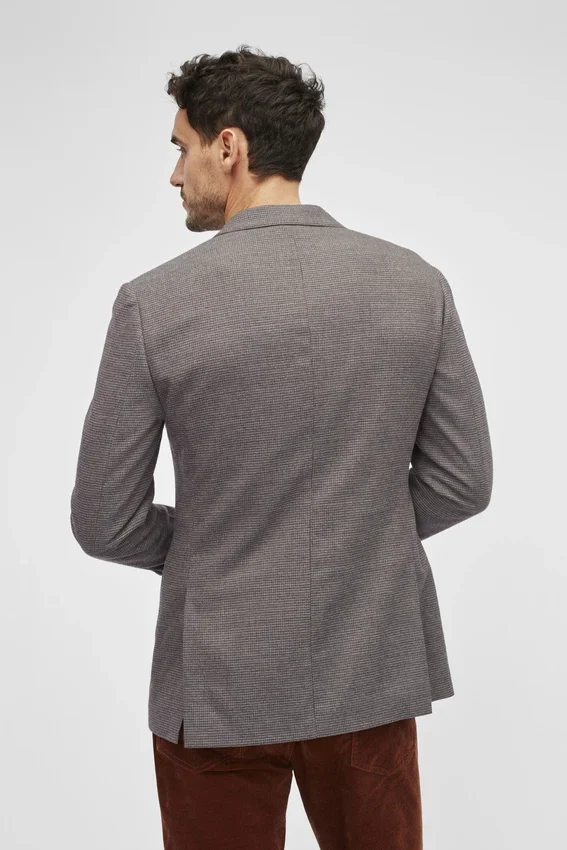 Características de la chaqueta: solapa en V | bolsillos con solapa | corte de un solo pecho con 2 botones | interior totalmente forrado | bolsillos interiores de ojal | botones no funcionales en los puños | fieltro en el bajo del cuello | doble abertura trasera | confección ligera