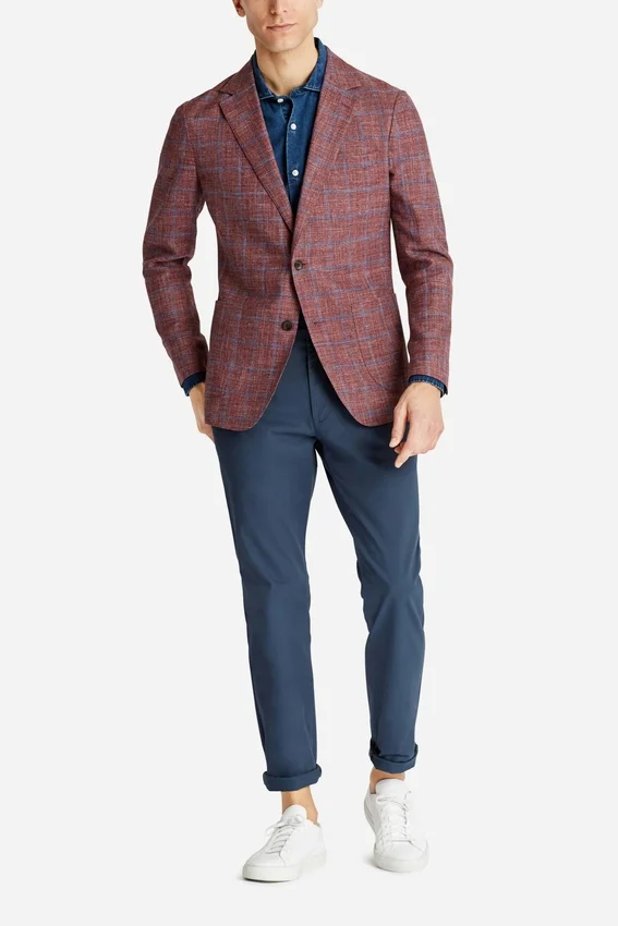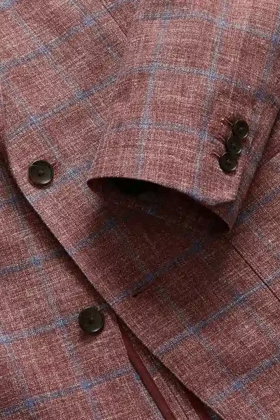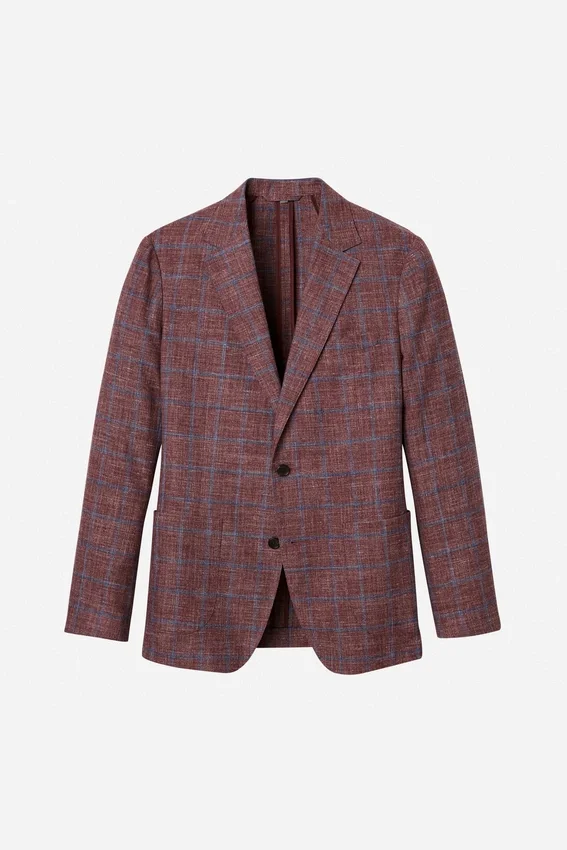 Solapa en V | Dos botones | Bolsillos de parche | Sin forro y Unconstructed | Botones funcionales en los puños | Doble abertura