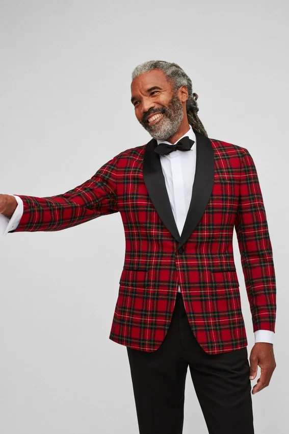 Características de la chaqueta: solapa de chal negra de 6,35 cm de ancho | Totalmente forrada | Bolsillos con solapa | 2 botones, corte de un solo pecho | Botones decorativos en los puños | Doble abertura trasera | Bolsillos interiores de ojal
