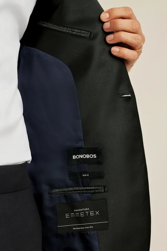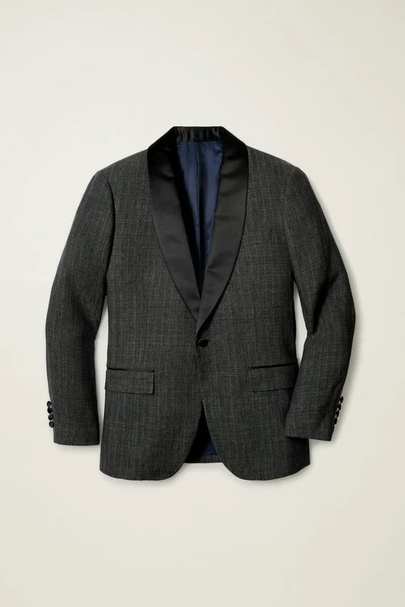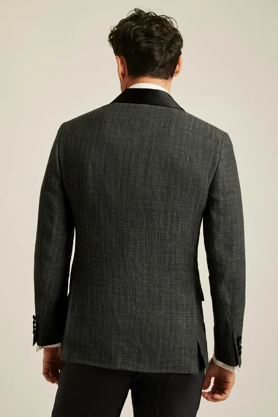 Cuello chal | Un solo botón en la parte delantera | Solapa de satén en contraste | Bolsillos con solapa | Interior totalmente forrado | Aberturas traseras | Botones forrados