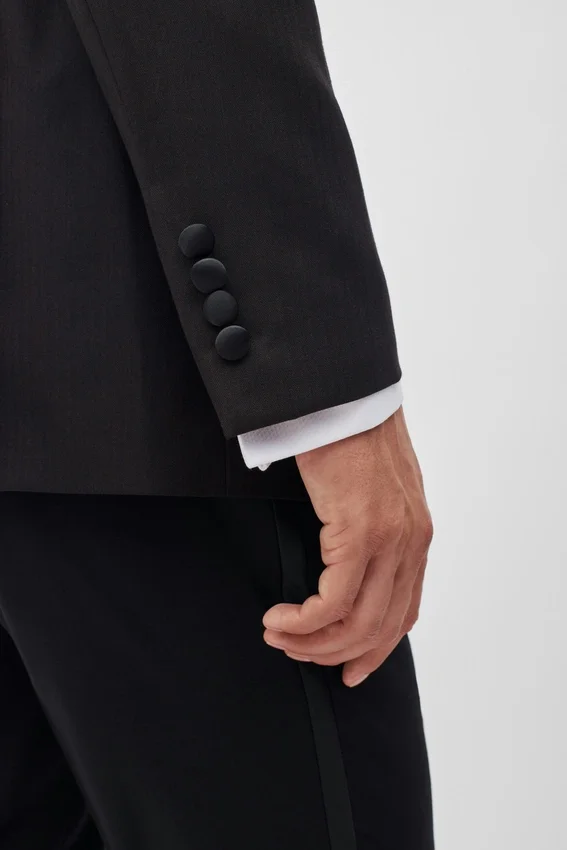 ¿Bodas, eventos de etiqueta o simplemente quieres añadir un toque de estilo superior a tu armario? Entonces, la chaqueta de esmoquin Capstone es para ti. 100 % lana italiana y ajuste perfecto.