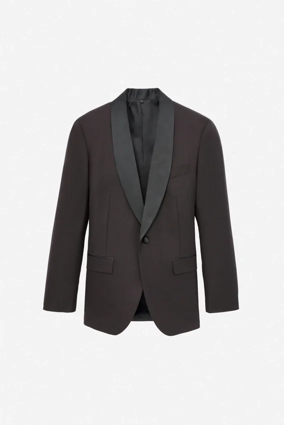 Botón único | Solapa de satén tipo chal | Bolsillos con solapa | Totalmente forrado | Bolsillos interiores | Cuello interior de fieltro | Doble abertura trasera